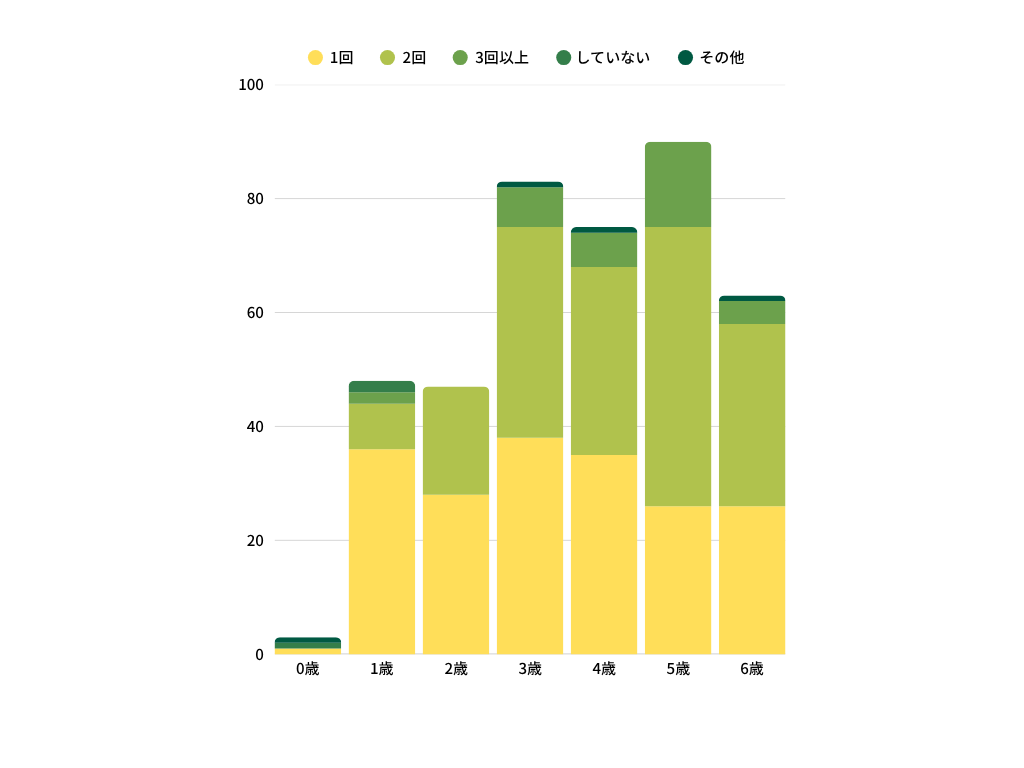 3ヶ月に1回という、歯科医が推奨するペースで通っているご家庭が1/3以上いらっしゃいました。最近はキッズスペースが充実した「こどもに優しい歯医者さん」も増えているので、上手に活用していきたいですね。